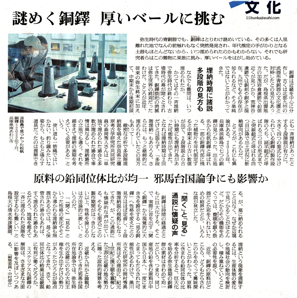 「謎めく銅鐸 厚いベールに挑む」朝日新聞朝刊/Asahi.com 有料記事 New!