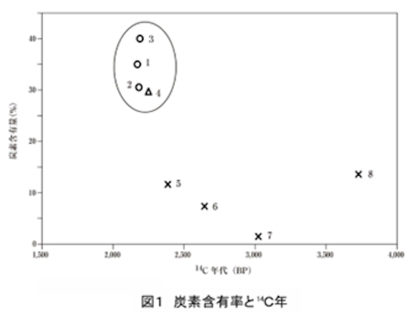 年代測定を担当したのは、奈良文化財研究所で、科学的方法で測定した結果を、非科学的な処置をして、誤ったまま発表していました。年輪年代法と同様に、秀れた科学的方法を使いながら、誤った処置により、非科学的な間違った発表を行い、この事例でも歴史学の研究を妨げています。